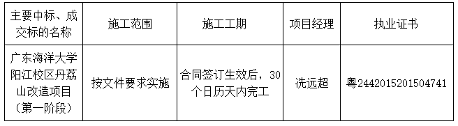 广东业信采购招标有限公司受 广东海洋大学阳江校区管理办公室 的委托,于2025年9月29日就 广东海洋大学阳江校区丹荔山改造项目(第一阶段)(项目编号:YXCG-20250912)采用竞争性磋商方式进行采购。现就本次采购的成交结果公告如下: